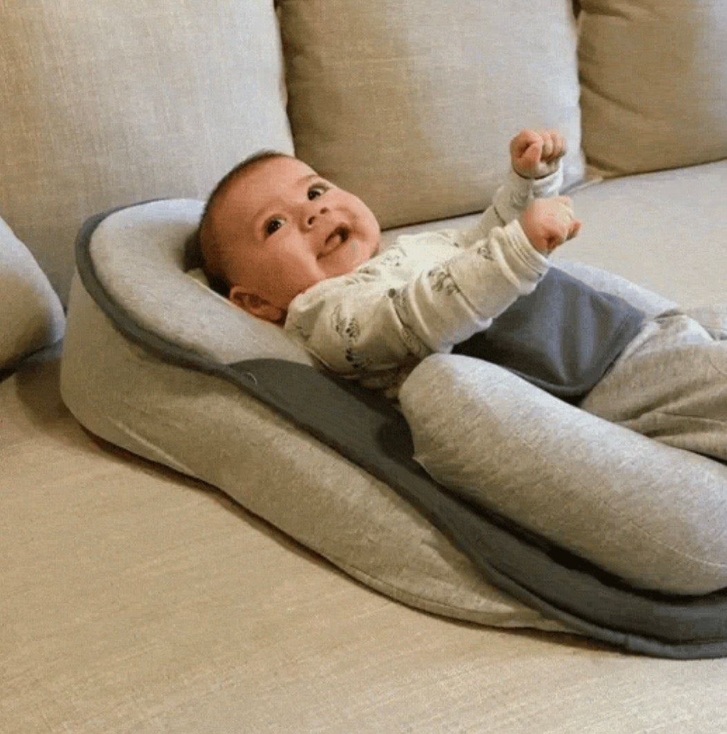 A removable cushion elevates the legs to aid digestion and help relieve reflux and colic.